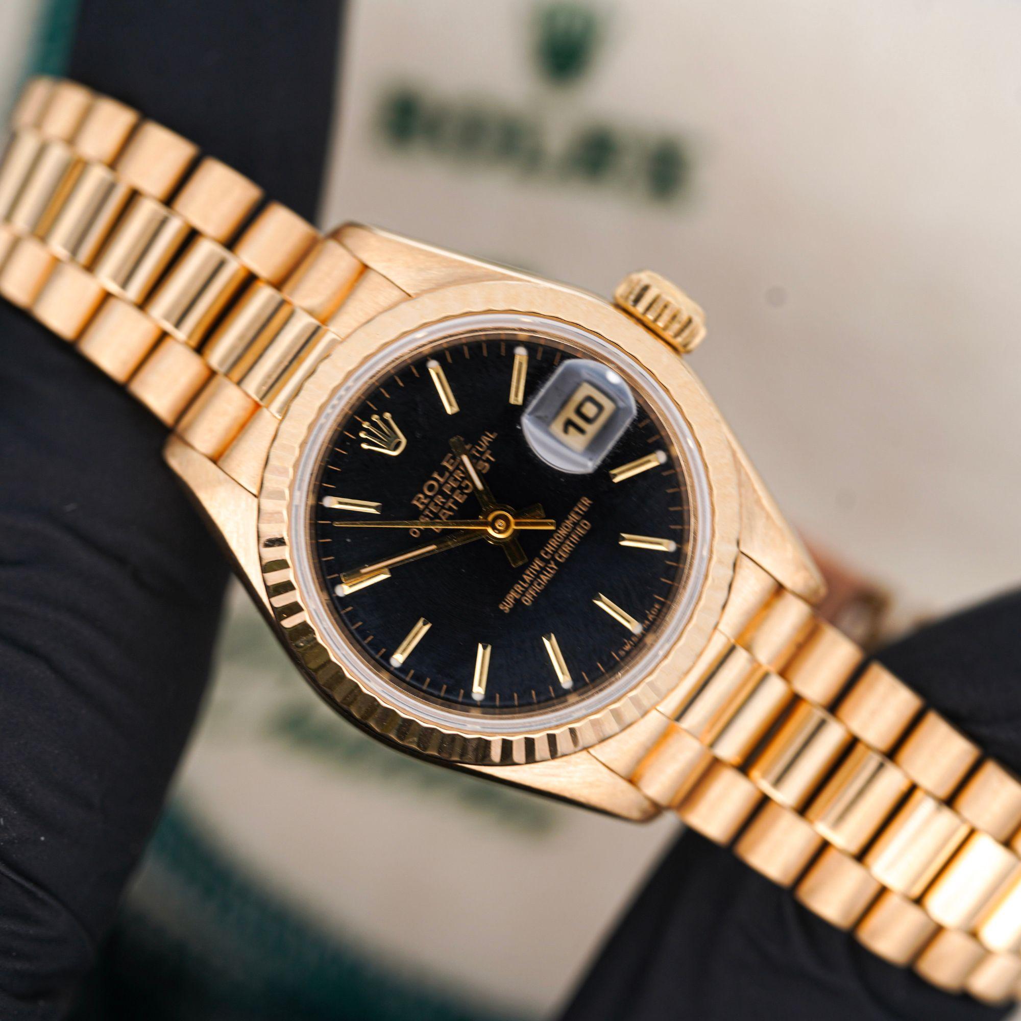 Rolex Datejust 69178 18K Yellow Gold Black Dial Presidential Bracelet Watch